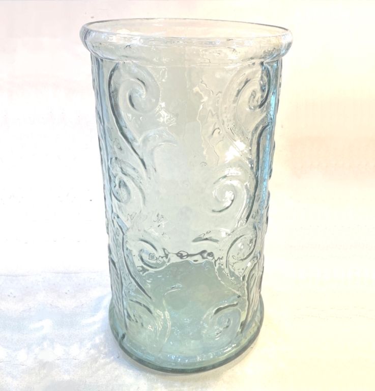 Arabesque Design Hand Blown Recycled Glass XL Cylinder Vase