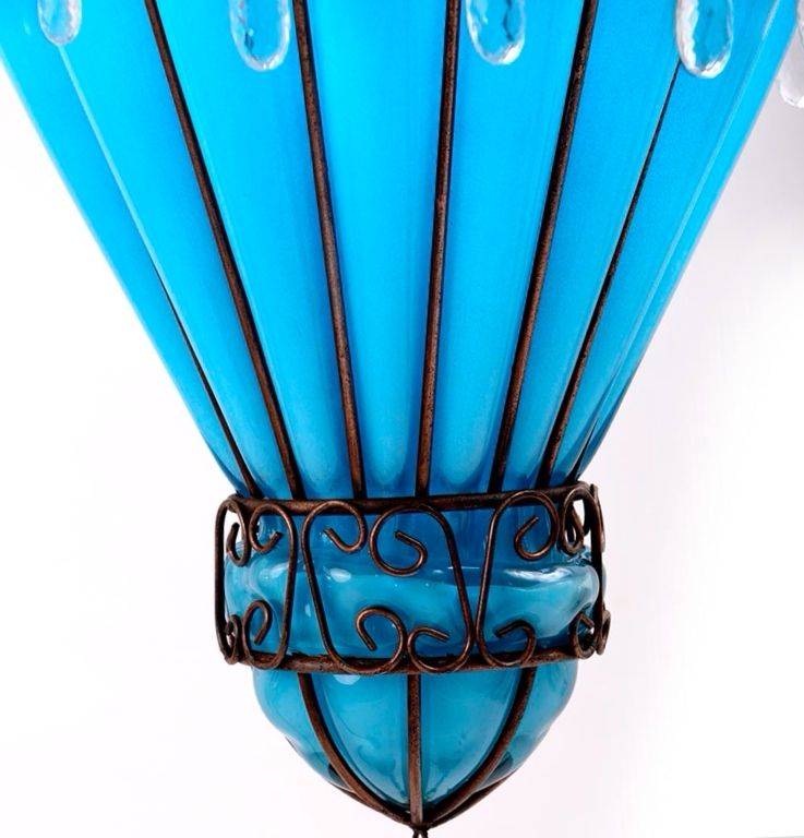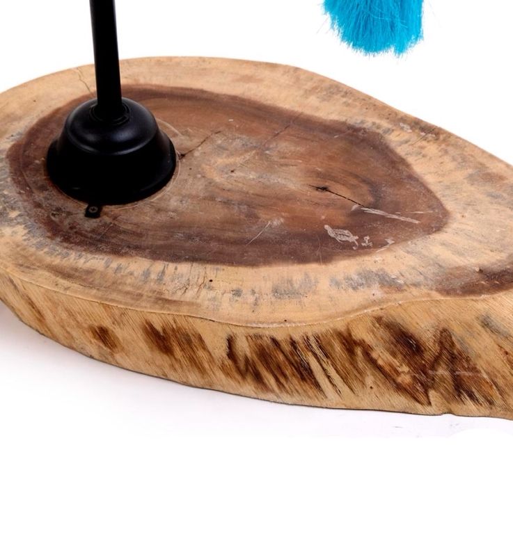 Material: Wood in Polyurethane Finish, Antique Copper-Plated Metal, Teal Recycled Glass
