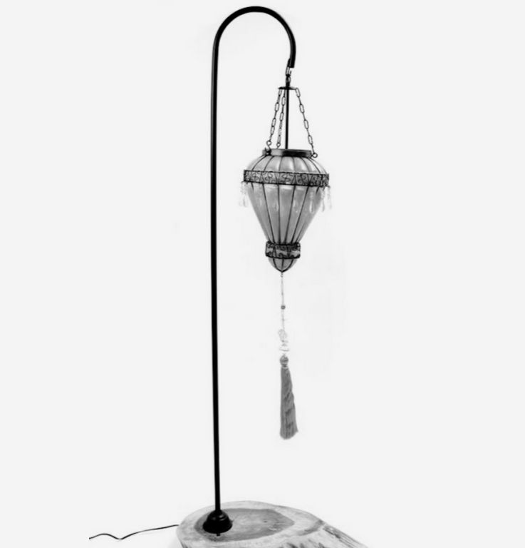 Cone Shaped Blown Glass Large Lamp with 7 Footer Stand on Raw Old Trunk
