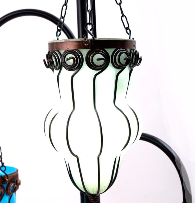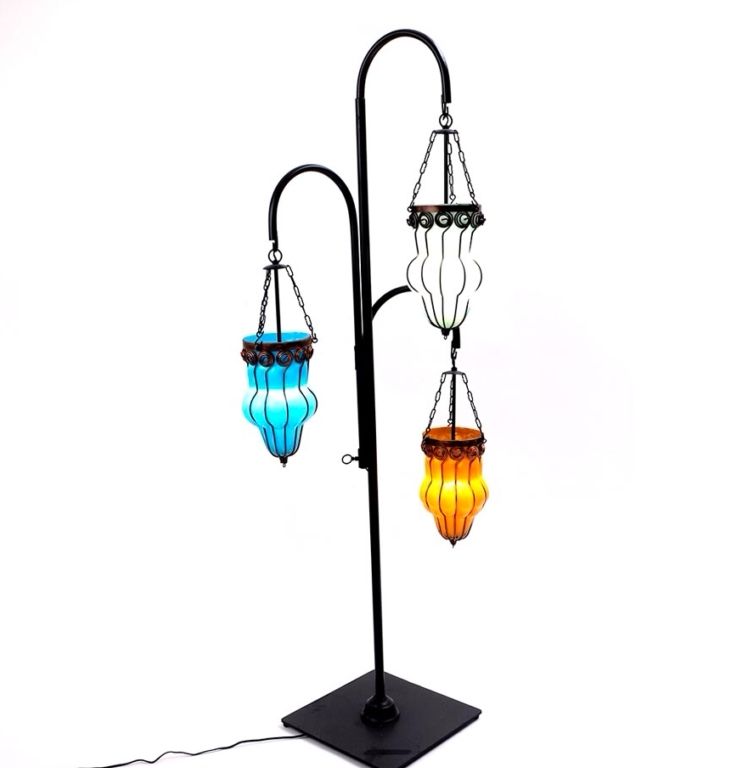 Triple Metal Stand with 3 Multicolored Blown Glass Lamp