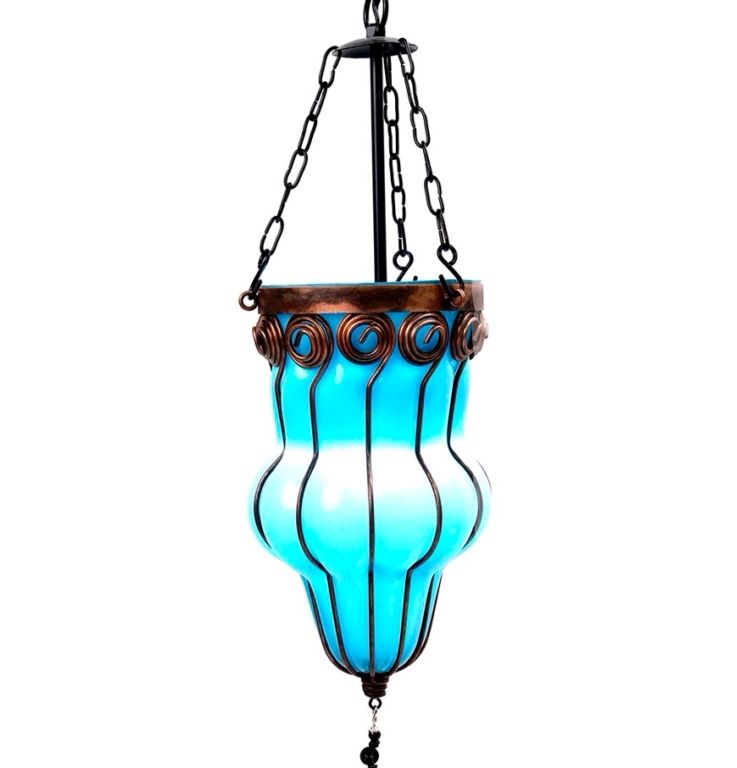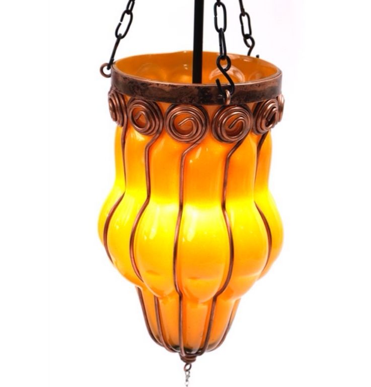 Material: Antique Copper-Plated Metal, Recycled Multi Colored Glass, Mustard and Milk